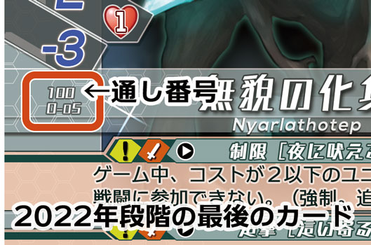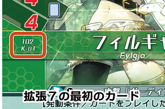 そして2023年秋に発売した拡張7に含まれるユニットカードの通し番号は、「102」から始まります。